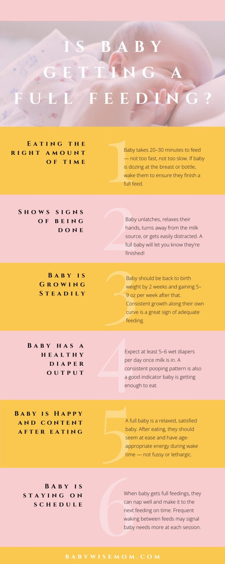 There are some common things to watch out for to know if baby is done eating or not. Let’s discuss 6 ways you can tell baby is full and has had a full feeding.